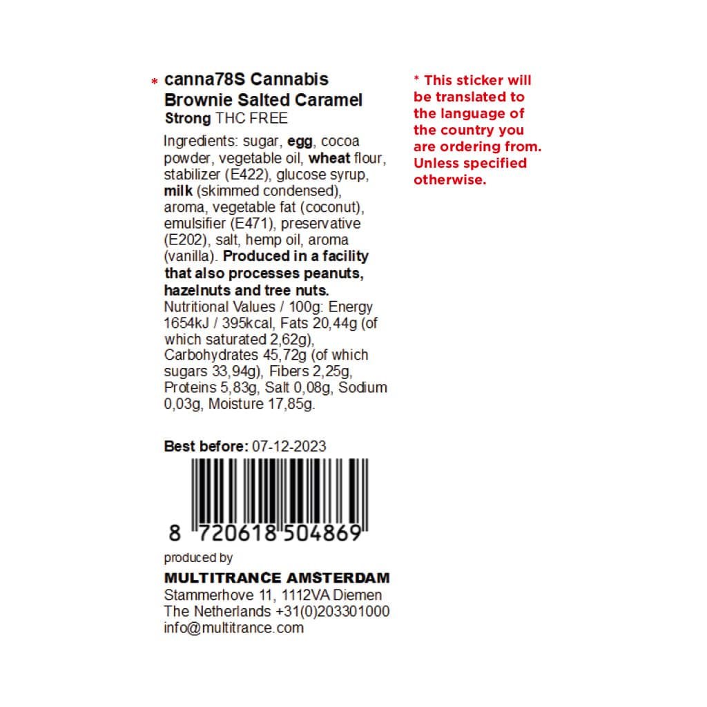 Um ousado bolo espacial de Amsterdã com cacau e caramelo salgado, realçado por um forte sabor sativa. Rico, macio, 0% de THC e embalado em plástico para manter o frescor.